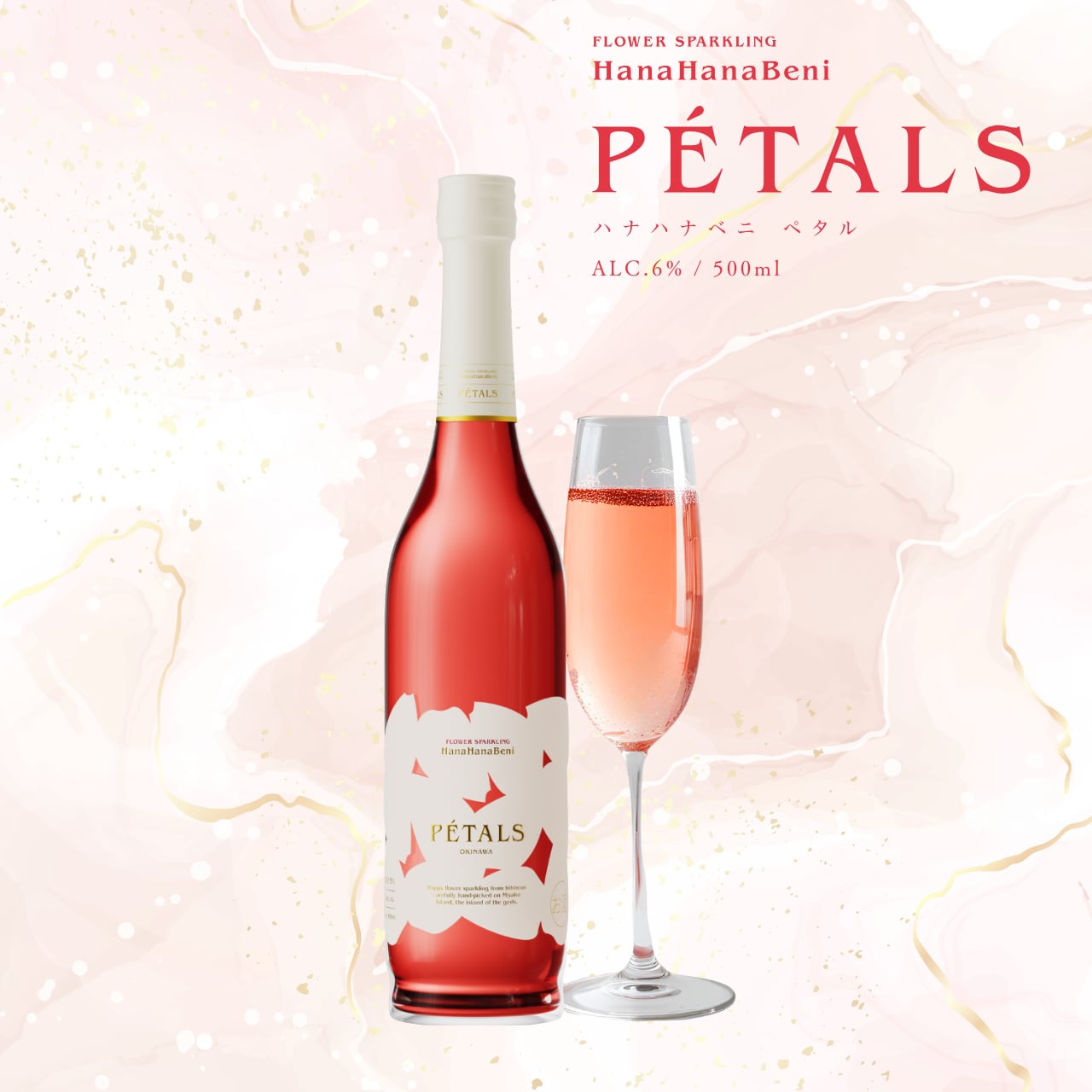 世界で初めて、花の恵みのスパークリング。アルコール度数の優しい「HanaHanaBeniペタル」で、カジュアルにお楽しみください。 宮古島産のハイビスカス(あかばなぁ種)の花びらのエキスでつくりあげた、世界初のフラワースパークリング、「PETALS」は「花びら」の意味です。 爽やかなリンゴの香りとハイビスカス由来の甘酸っぱい味わいに、色鮮やかな色合いが特徴です。 お世話になった方へのお土産に、パーティーなどの特別なひとときの乾杯ドリンクにいかがでしょうか? ※贈答用などで専用ギフトバック(税込み330円)が必要な方は、オプションで専用ギフトバック<有り>を選択して下さい。 【原材料名】ハイビスカスドリンク(ハイビスカスエキスパウダー(ハイビスカス(宮古島産)))、りんご果汁、ハイビスカスエキスパウダー、焼酎(甲類)(国内製造)、食塩、糖類、炭酸、酸味料、香料、ムラサキトウモロコシ色素、赤色102号 【内容量】500ml 【保存方法】冷暗所で保存してください 【容器】本体:ガラスビン、ラベル:紙 【取扱注意事項】 ・ 本品は炭酸入り発泡性リキュールです。 ・ 成分が沈殿することがありますが、品質には問題ありません。 ・ 開栓後はお早めにお召し上がりください。 ・ 飲酒は20歳になってから、おいしく適量を。 ・ 妊娠中や授乳期の飲酒は、対峙・乳児の発育に悪影響を与えるおそれがあります。